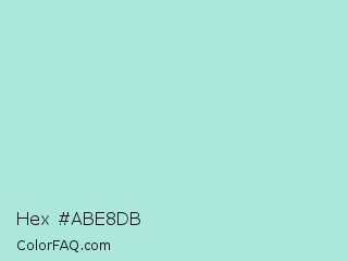 Hex #abe8db Color is a light cyan color and the nearest color is Water Leaf #a1e9de. Hex code #abe8db and RGB value is rgb(171,232,219). In RGB color space, this color is composed of 67% red, 91% green, 86% blue, In CMYK color space, this color is composed of 26% cyan, 0% magenta, 6% yellow , 9% black , In HSL color space, this color has a hue angle of 167° , 57% saturation and 79% lightness.