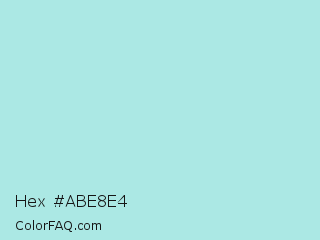 Hex #abe8e4 Color is a light cyan color and the nearest color is Powder Blue #b0e0e6. Hex code #abe8e4 and RGB value is rgb(171,232,228). In RGB color space, this color is composed of 67% red, 91% green, 89% blue, In CMYK color space, this color is composed of 26% cyan, 0% magenta, 2% yellow , 9% black , In HSL color space, this color has a hue angle of 176° , 57% saturation and 79% lightness.