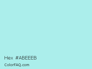 Hex #abeeeb Color is a light cyan color and the nearest color is Pale Turquoise #afeeee. Hex code #abeeeb and RGB value is rgb(171,238,235). In RGB color space, this color is composed of 67% red, 93% green, 92% blue, In CMYK color space, this color is composed of 28% cyan, 0% magenta, 1% yellow , 7% black , In HSL color space, this color has a hue angle of 177° , 66% saturation and 80% lightness.