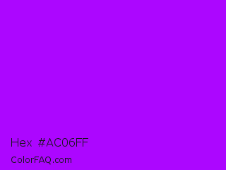 Hex #ac06ff Color is a normal purple color and the nearest color is Vivid Violet #9f00ff. Hex code #ac06ff and RGB value is rgb(172,6,255). In RGB color space, this color is composed of 67% red, 2% green, 100% blue, In CMYK color space, this color is composed of 33% cyan, 98% magenta, 0% yellow , 0% black , In HSL color space, this color has a hue angle of 280° , 100% saturation and 51% lightness.