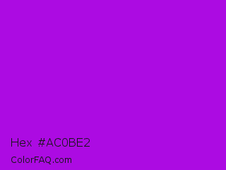 Hex #ac0be2 Color is a normal purple color and the nearest color is Vivid Mulberry #b80ce3. Hex code #ac0be2 and RGB value is rgb(172,11,226). In RGB color space, this color is composed of 67% red, 4% green, 89% blue, In CMYK color space, this color is composed of 24% cyan, 95% magenta, 0% yellow , 11% black , In HSL color space, this color has a hue angle of 285° , 91% saturation and 46% lightness.