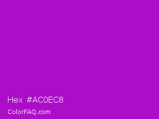 Hex #ac0ec8 Color is a normal purple color and the nearest color is Heliotrope Magenta #aa00bb. Hex code #ac0ec8 and RGB value is rgb(172,14,200). In RGB color space, this color is composed of 67% red, 5% green, 78% blue, In CMYK color space, this color is composed of 14% cyan, 93% magenta, 0% yellow , 22% black , In HSL color space, this color has a hue angle of 291° , 87% saturation and 42% lightness.