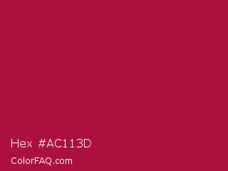 Hex #ac113d Color is a normal rose color and the nearest color is French Wine #ac1e44. Hex code #ac113d and RGB value is rgb(172,17,61). In RGB color space, this color is composed of 67% red, 7% green, 24% blue, In CMYK color space, this color is composed of 0% cyan, 90% magenta, 65% yellow , 33% black , In HSL color space, this color has a hue angle of 343° , 82% saturation and 37% lightness.