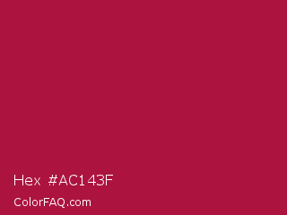 Hex #ac143f Color is a normal rose color and the nearest color is French Wine #ac1e44. Hex code #ac143f and RGB value is rgb(172,20,63). In RGB color space, this color is composed of 67% red, 8% green, 25% blue, In CMYK color space, this color is composed of 0% cyan, 88% magenta, 63% yellow , 33% black , In HSL color space, this color has a hue angle of 343° , 79% saturation and 38% lightness.