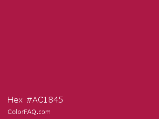 Hex #ac1845 Color is a normal rose color and the nearest color is French Wine #ac1e44. Hex code #ac1845 and RGB value is rgb(172,24,69). In RGB color space, this color is composed of 67% red, 9% green, 27% blue, In CMYK color space, this color is composed of 0% cyan, 86% magenta, 60% yellow , 33% black , In HSL color space, this color has a hue angle of 342° , 76% saturation and 38% lightness.