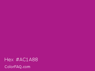 Hex #ac1a88 Color is a normal magenta color and the nearest color is Fandango #b53389. Hex code #ac1a88 and RGB value is rgb(172,26,136). In RGB color space, this color is composed of 67% red, 10% green, 53% blue, In CMYK color space, this color is composed of 0% cyan, 85% magenta, 21% yellow , 33% black , In HSL color space, this color has a hue angle of 315° , 74% saturation and 39% lightness.