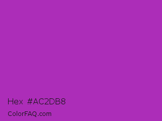 Hex #ac2db8 Color is a normal magenta color and the nearest color is Byzantine #bd33a4. Hex code #ac2db8 and RGB value is rgb(172,45,184). In RGB color space, this color is composed of 67% red, 18% green, 72% blue, In CMYK color space, this color is composed of 7% cyan, 76% magenta, 0% yellow , 28% black , In HSL color space, this color has a hue angle of 295° , 61% saturation and 45% lightness.