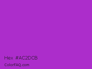 Hex #ac2dcb Color is a normal purple color and the nearest color is Dark Orchid #9932cc. Hex code #ac2dcb and RGB value is rgb(172,45,203). In RGB color space, this color is composed of 67% red, 18% green, 80% blue, In CMYK color space, this color is composed of 15% cyan, 78% magenta, 0% yellow , 20% black , In HSL color space, this color has a hue angle of 288° , 64% saturation and 49% lightness.