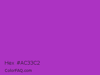 Hex #ac33c2 Color is a normal purple color and the nearest color is Dark Orchid #9932cc. Hex code #ac33c2 and RGB value is rgb(172,51,194). In RGB color space, this color is composed of 67% red, 20% green, 76% blue, In CMYK color space, this color is composed of 11% cyan, 74% magenta, 0% yellow , 24% black , In HSL color space, this color has a hue angle of 291° , 58% saturation and 48% lightness.