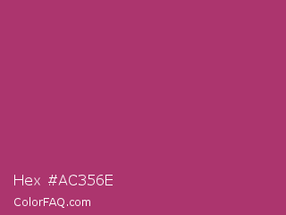 Hex #ac356e Color is a normal rose color and the nearest color is Royal Heath #ab3472. Hex code #ac356e and RGB value is rgb(172,53,110). In RGB color space, this color is composed of 67% red, 21% green, 43% blue, In CMYK color space, this color is composed of 0% cyan, 69% magenta, 36% yellow , 33% black , In HSL color space, this color has a hue angle of 331° , 53% saturation and 44% lightness.