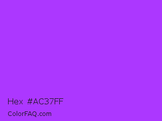 Hex #ac37ff Color is a light purple color and the nearest color is Veronica #a020f0. Hex code #ac37ff and RGB value is rgb(172,55,255). In RGB color space, this color is composed of 67% red, 22% green, 100% blue, In CMYK color space, this color is composed of 33% cyan, 78% magenta, 0% yellow , 0% black , In HSL color space, this color has a hue angle of 275° , 100% saturation and 61% lightness.