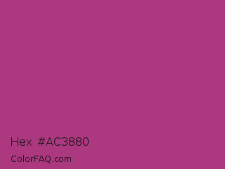 Hex #ac3880 Color is a normal magenta color and the nearest color is Maximum Red Purple #a63a79. Hex code #ac3880 and RGB value is rgb(172,56,128). In RGB color space, this color is composed of 67% red, 22% green, 50% blue, In CMYK color space, this color is composed of 0% cyan, 67% magenta, 26% yellow , 33% black , In HSL color space, this color has a hue angle of 323° , 51% saturation and 45% lightness.