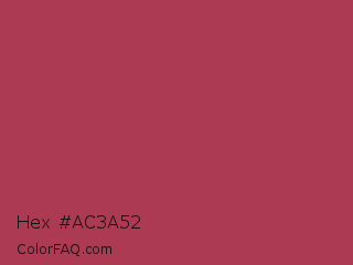 Hex #ac3a52 Color is a normal red color and the nearest color is Night Shadz #aa375a. Hex code #ac3a52 and RGB value is rgb(172,58,82). In RGB color space, this color is composed of 67% red, 23% green, 32% blue, In CMYK color space, this color is composed of 0% cyan, 66% magenta, 52% yellow , 33% black , In HSL color space, this color has a hue angle of 347° , 50% saturation and 45% lightness.