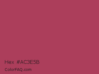 Hex #ac3e5b Color is a normal rose color and the nearest color is Night Shadz #aa375a. Hex code #ac3e5b and RGB value is rgb(172,62,91). In RGB color space, this color is composed of 67% red, 24% green, 36% blue, In CMYK color space, this color is composed of 0% cyan, 64% magenta, 47% yellow , 33% black , In HSL color space, this color has a hue angle of 344° , 47% saturation and 46% lightness.