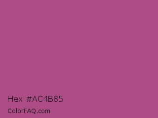 Hex #ac4b85 Color is a normal magenta color and the nearest color is Mystic Maroon #ad4379. Hex code #ac4b85 and RGB value is rgb(172,75,133). In RGB color space, this color is composed of 67% red, 29% green, 52% blue, In CMYK color space, this color is composed of 0% cyan, 56% magenta, 23% yellow , 33% black , In HSL color space, this color has a hue angle of 324° , 39% saturation and 48% lightness.