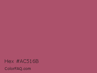 Hex #ac516b Color is a normal rose color and the nearest color is China Rose #a8516e. Hex code #ac516b and RGB value is rgb(172,81,107). In RGB color space, this color is composed of 67% red, 32% green, 42% blue, In CMYK color space, this color is composed of 0% cyan, 53% magenta, 38% yellow , 33% black , In HSL color space, this color has a hue angle of 343° , 36% saturation and 50% lightness.