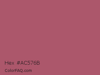 Hex #ac576b Color is a normal red color and the nearest color is Deep Puce #a95c68. Hex code #ac576b and RGB value is rgb(172,87,107). In RGB color space, this color is composed of 67% red, 34% green, 42% blue, In CMYK color space, this color is composed of 0% cyan, 49% magenta, 38% yellow , 33% black , In HSL color space, this color has a hue angle of 346° , 34% saturation and 51% lightness.