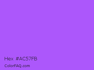 Hex #ac57fb Color is a light purple color and the nearest color is Navy Purple #9457eb. Hex code #ac57fb and RGB value is rgb(172,87,251). In RGB color space, this color is composed of 67% red, 34% green, 98% blue, In CMYK color space, this color is composed of 31% cyan, 65% magenta, 0% yellow , 2% black , In HSL color space, this color has a hue angle of 271° , 95% saturation and 66% lightness.