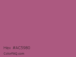 Hex #ac5980 Color is a normal rose color and the nearest color is Tapestry #b05e81. Hex code #ac5980 and RGB value is rgb(172,89,128). In RGB color space, this color is composed of 67% red, 35% green, 50% blue, In CMYK color space, this color is composed of 0% cyan, 48% magenta, 26% yellow , 33% black , In HSL color space, this color has a hue angle of 332° , 33% saturation and 51% lightness.