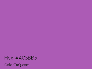 Hex #ac5bb5 Color is a normal magenta color and the nearest color is Purple Plum #9c51b6. Hex code #ac5bb5 and RGB value is rgb(172,91,181). In RGB color space, this color is composed of 67% red, 36% green, 71% blue, In CMYK color space, this color is composed of 5% cyan, 50% magenta, 0% yellow , 29% black , In HSL color space, this color has a hue angle of 294° , 38% saturation and 53% lightness.