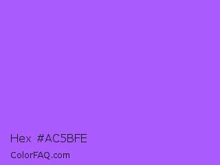 Hex #ac5bfe Color is a light violet color and the nearest color is Navy Purple #9457eb. Hex code #ac5bfe and RGB value is rgb(172,91,254). In RGB color space, this color is composed of 67% red, 36% green, 100% blue, In CMYK color space, this color is composed of 32% cyan, 64% magenta, 0% yellow , 0% black , In HSL color space, this color has a hue angle of 270° , 99% saturation and 68% lightness.