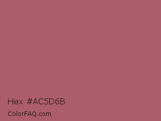 Hex #ac5d6b Color is a normal red color and the nearest color is Deep Puce #a95c68. Hex code #ac5d6b and RGB value is rgb(172,93,107). In RGB color space, this color is composed of 67% red, 36% green, 42% blue, In CMYK color space, this color is composed of 0% cyan, 46% magenta, 38% yellow , 33% black , In HSL color space, this color has a hue angle of 349° , 32% saturation and 52% lightness.