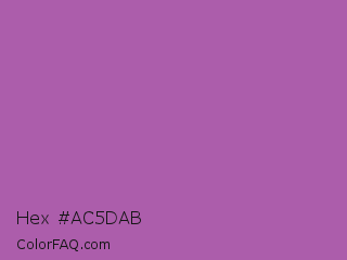 Hex #ac5dab Color is a normal magenta color and the nearest color is Pearly Purple #b768a2. Hex code #ac5dab and RGB value is rgb(172,93,171). In RGB color space, this color is composed of 67% red, 36% green, 67% blue, In CMYK color space, this color is composed of 0% cyan, 46% magenta, 1% yellow , 33% black , In HSL color space, this color has a hue angle of 301° , 32% saturation and 52% lightness.