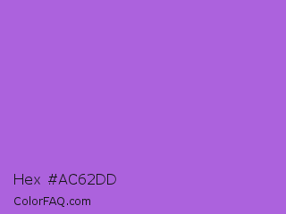 Hex #ac62dd Color is a light purple color and the nearest color is Rich Lilac #b666d2. Hex code #ac62dd and RGB value is rgb(172,98,221). In RGB color space, this color is composed of 67% red, 38% green, 87% blue, In CMYK color space, this color is composed of 22% cyan, 56% magenta, 0% yellow , 13% black , In HSL color space, this color has a hue angle of 276° , 64% saturation and 63% lightness.