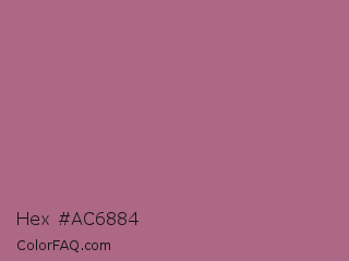 Hex #ac6884 Color is a normal rose color and the nearest color is Tapestry #b05e81. Hex code #ac6884 and RGB value is rgb(172,104,132). In RGB color space, this color is composed of 67% red, 41% green, 52% blue, In CMYK color space, this color is composed of 0% cyan, 40% magenta, 23% yellow , 33% black , In HSL color space, this color has a hue angle of 335° , 29% saturation and 54% lightness.