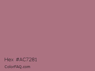 Hex #ac7281 Color is a normal rose color and the nearest color is Turkish Rose #b57281. Hex code #ac7281 and RGB value is rgb(172,114,129). In RGB color space, this color is composed of 67% red, 45% green, 51% blue, In CMYK color space, this color is composed of 0% cyan, 34% magenta, 25% yellow , 33% black , In HSL color space, this color has a hue angle of 344° , 26% saturation and 56% lightness.