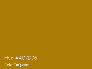 Hex #ac7d06 Color is a normal orange color and the nearest color is Hot Toddy #b38007. Hex code #ac7d06 and RGB value is rgb(172,125,6). In RGB color space, this color is composed of 67% red, 49% green, 2% blue, In CMYK color space, this color is composed of 0% cyan, 27% magenta, 97% yellow , 33% black , In HSL color space, this color has a hue angle of 43° , 93% saturation and 35% lightness.