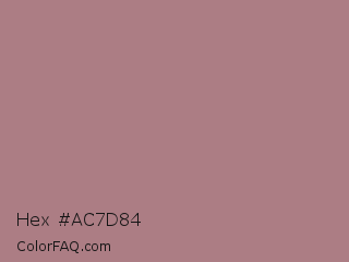 Hex #ac7d84 Color is a normal red color and the nearest color is Pharlap #a3807b. Hex code #ac7d84 and RGB value is rgb(172,125,132). In RGB color space, this color is composed of 67% red, 49% green, 52% blue, In CMYK color space, this color is composed of 0% cyan, 27% magenta, 23% yellow , 33% black , In HSL color space, this color has a hue angle of 351° , 22% saturation and 58% lightness.