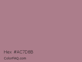 Hex #ac7d8b Color is a normal rose color and the nearest color is English Lavender #b48395. Hex code #ac7d8b and RGB value is rgb(172,125,139). In RGB color space, this color is composed of 67% red, 49% green, 55% blue, In CMYK color space, this color is composed of 0% cyan, 27% magenta, 19% yellow , 33% black , In HSL color space, this color has a hue angle of 342° , 22% saturation and 58% lightness.