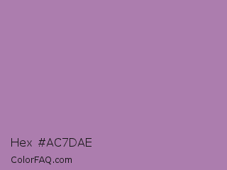 Hex #ac7dae Color is a normal magenta color and the nearest color is Opera Mauve #b784a7. Hex code #ac7dae and RGB value is rgb(172,125,174). In RGB color space, this color is composed of 67% red, 49% green, 68% blue, In CMYK color space, this color is composed of 1% cyan, 28% magenta, 0% yellow , 32% black , In HSL color space, this color has a hue angle of 298° , 23% saturation and 59% lightness.