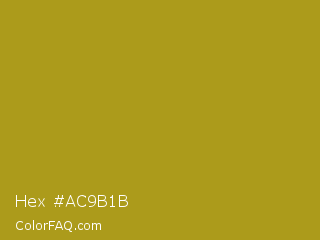 Hex #ac9b1b Color is a normal yellow color and the nearest color is Lucky #af9f1c. Hex code #ac9b1b and RGB value is rgb(172,155,27). In RGB color space, this color is composed of 67% red, 61% green, 11% blue, In CMYK color space, this color is composed of 0% cyan, 10% magenta, 84% yellow , 33% black , In HSL color space, this color has a hue angle of 53° , 73% saturation and 39% lightness.