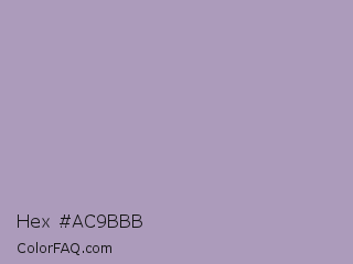 Hex #ac9bbb Color is a light purple color and the nearest color is Pastel Purple #b39eb5. Hex code #ac9bbb and RGB value is rgb(172,155,187). In RGB color space, this color is composed of 67% red, 61% green, 73% blue, In CMYK color space, this color is composed of 8% cyan, 17% magenta, 0% yellow , 27% black , In HSL color space, this color has a hue angle of 272° , 19% saturation and 67% lightness.