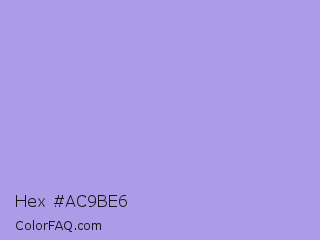 Hex #ac9be6 Color is a light indigo color and the nearest color is Dull Lavender #a899e6. Hex code #ac9be6 and RGB value is rgb(172,155,230). In RGB color space, this color is composed of 67% red, 61% green, 90% blue, In CMYK color space, this color is composed of 25% cyan, 33% magenta, 0% yellow , 10% black , In HSL color space, this color has a hue angle of 254° , 60% saturation and 75% lightness.