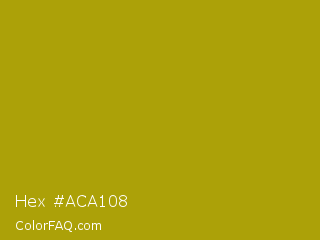 Hex #aca108 Color is a normal yellow color and the nearest color is Sahara #b7a214. Hex code #aca108 and RGB value is rgb(172,161,8). In RGB color space, this color is composed of 67% red, 63% green, 3% blue, In CMYK color space, this color is composed of 0% cyan, 6% magenta, 95% yellow , 33% black , In HSL color space, this color has a hue angle of 56° , 91% saturation and 35% lightness.