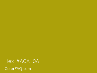 Hex #aca10a Color is a normal yellow color and the nearest color is Sahara #b7a214. Hex code #aca10a and RGB value is rgb(172,161,10). In RGB color space, this color is composed of 67% red, 63% green, 4% blue, In CMYK color space, this color is composed of 0% cyan, 6% magenta, 94% yellow , 33% black , In HSL color space, this color has a hue angle of 56° , 89% saturation and 36% lightness.