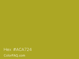 Hex #aca724 Color is a normal yellow color and the nearest color is Lemon Ginger #ac9e22. Hex code #aca724 and RGB value is rgb(172,167,36). In RGB color space, this color is composed of 67% red, 65% green, 14% blue, In CMYK color space, this color is composed of 0% cyan, 3% magenta, 79% yellow , 33% black , In HSL color space, this color has a hue angle of 58° , 65% saturation and 41% lightness.