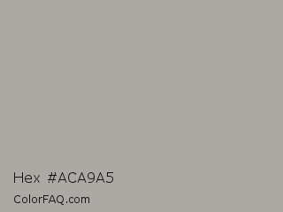 Hex #aca9a5 Color is a light orange color and the nearest color is Dark Medium Gray #a9a9a9. Hex code #aca9a5 and RGB value is rgb(172,169,165). In RGB color space, this color is composed of 67% red, 66% green, 65% blue, In CMYK color space, this color is composed of 0% cyan, 2% magenta, 4% yellow , 33% black , In HSL color space, this color has a hue angle of 34° , 4% saturation and 66% lightness.
