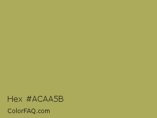 Hex #acaa5b Color is a normal yellow color and the nearest color is Olive Green #b5b35c. Hex code #acaa5b and RGB value is rgb(172,170,91). In RGB color space, this color is composed of 67% red, 67% green, 36% blue, In CMYK color space, this color is composed of 0% cyan, 1% magenta, 47% yellow , 33% black , In HSL color space, this color has a hue angle of 59° , 33% saturation and 52% lightness.