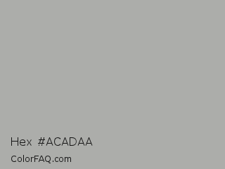 Hex #acadaa Color is a light green color and the nearest color is Silver Chalice #acacac. Hex code #acadaa and RGB value is rgb(172,173,170). In RGB color space, this color is composed of 67% red, 68% green, 67% blue, In CMYK color space, this color is composed of 1% cyan, 0% magenta, 2% yellow , 32% black , In HSL color space, this color has a hue angle of 80° , 2% saturation and 67% lightness.