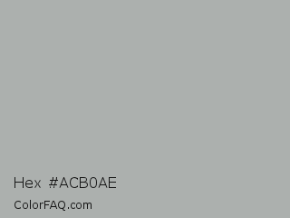 Hex #acb0ae Color is a light green color and the nearest color is Silver Chalice #acacac. Hex code #acb0ae and RGB value is rgb(172,176,174). In RGB color space, this color is composed of 67% red, 69% green, 68% blue, In CMYK color space, this color is composed of 2% cyan, 0% magenta, 1% yellow , 31% black , In HSL color space, this color has a hue angle of 150° , 2% saturation and 68% lightness.