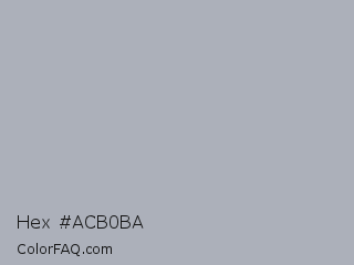 Hex #acb0ba Color is a light blue color and the nearest color is Bombay #afb1b8. Hex code #acb0ba and RGB value is rgb(172,176,186). In RGB color space, this color is composed of 67% red, 69% green, 73% blue, In CMYK color space, this color is composed of 8% cyan, 5% magenta, 0% yellow , 27% black , In HSL color space, this color has a hue angle of 223° , 9% saturation and 70% lightness.