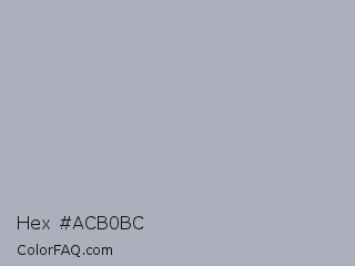 Hex #acb0bc Color is a light blue color and the nearest color is Bombay #afb1b8. Hex code #acb0bc and RGB value is rgb(172,176,188). In RGB color space, this color is composed of 67% red, 69% green, 74% blue, In CMYK color space, this color is composed of 9% cyan, 6% magenta, 0% yellow , 26% black , In HSL color space, this color has a hue angle of 225° , 11% saturation and 71% lightness.