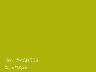 Hex #acb508 Color is a normal yellow color and the nearest color is La Rioja #b3c110. Hex code #acb508 and RGB value is rgb(172,181,8). In RGB color space, this color is composed of 67% red, 71% green, 3% blue, In CMYK color space, this color is composed of 5% cyan, 0% magenta, 96% yellow , 29% black , In HSL color space, this color has a hue angle of 63° , 92% saturation and 37% lightness.