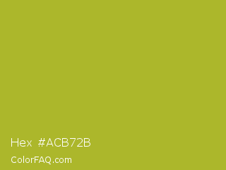 Hex #acb72b Color is a normal yellow color and the nearest color is Acid Green #b0bf1a. Hex code #acb72b and RGB value is rgb(172,183,43). In RGB color space, this color is composed of 67% red, 72% green, 17% blue, In CMYK color space, this color is composed of 6% cyan, 0% magenta, 77% yellow , 28% black , In HSL color space, this color has a hue angle of 65° , 62% saturation and 44% lightness.
