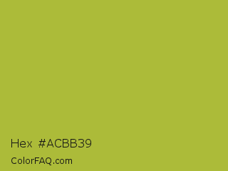 Hex #acbb39 Color is a normal yellow color and the nearest color is Android Green #a4c639. Hex code #acbb39 and RGB value is rgb(172,187,57). In RGB color space, this color is composed of 67% red, 73% green, 22% blue, In CMYK color space, this color is composed of 8% cyan, 0% magenta, 70% yellow , 27% black , In HSL color space, this color has a hue angle of 67° , 53% saturation and 48% lightness.