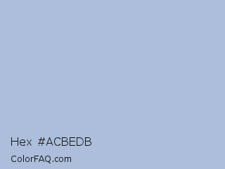 Hex #acbedb Color is a light blue color and the nearest color is Pigeon Post #afbdd9. Hex code #acbedb and RGB value is rgb(172,190,219). In RGB color space, this color is composed of 67% red, 75% green, 86% blue, In CMYK color space, this color is composed of 21% cyan, 13% magenta, 0% yellow , 14% black , In HSL color space, this color has a hue angle of 217° , 39% saturation and 77% lightness.